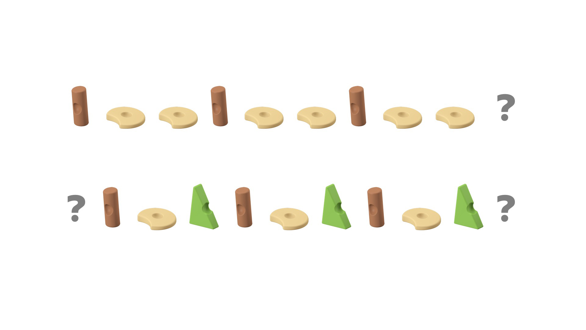 🇫🇷 Créez une séquence de Resources® sur une ligne. Guidez les élèves pour qu’ils devinent quelle pièce manque ou vient ensuite, en se basant sur le modèle de la séquence.